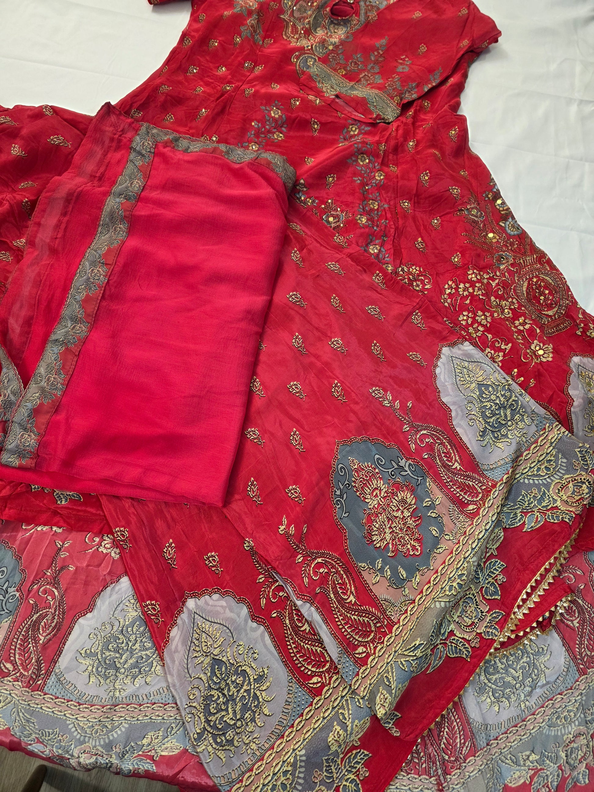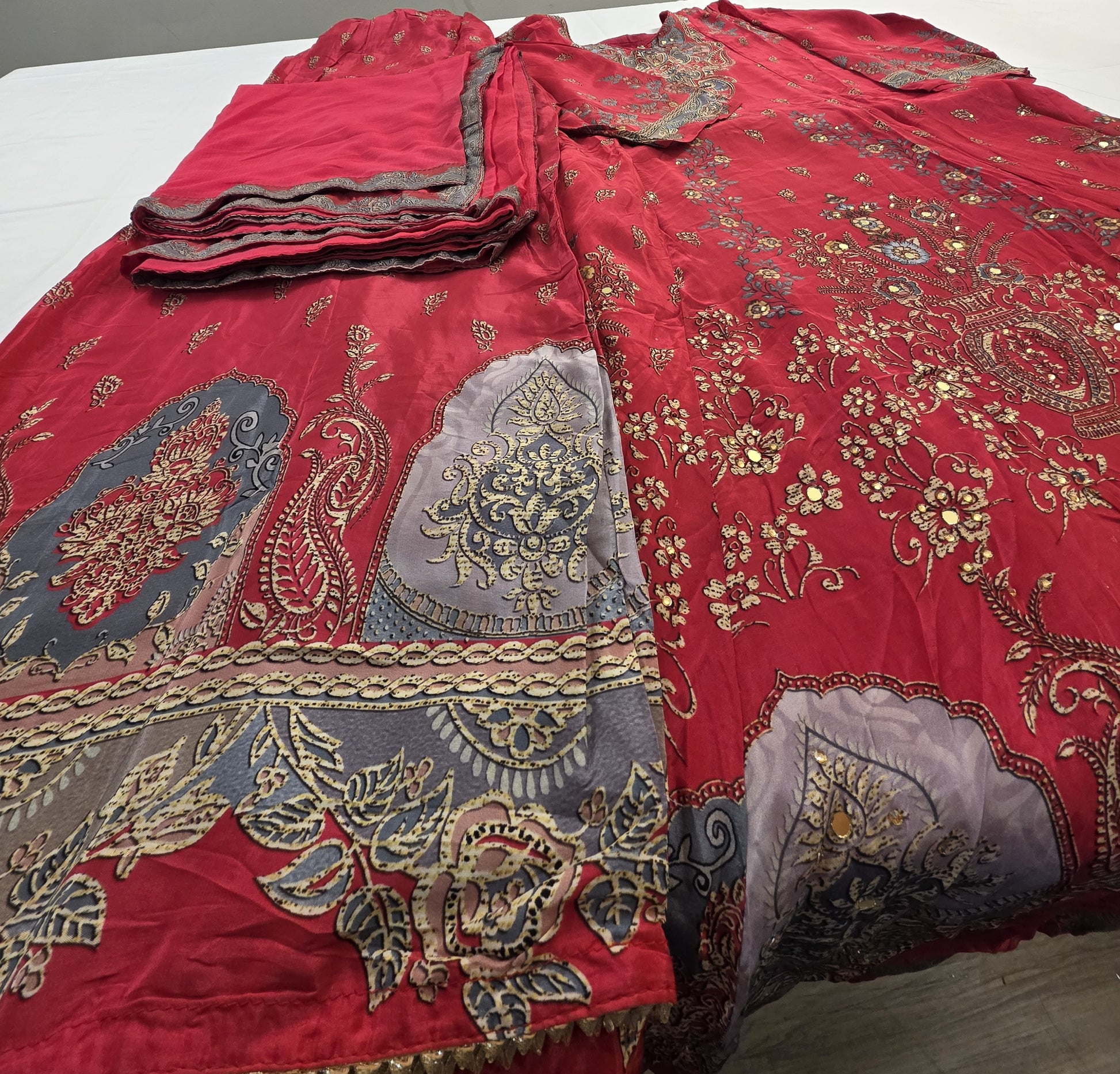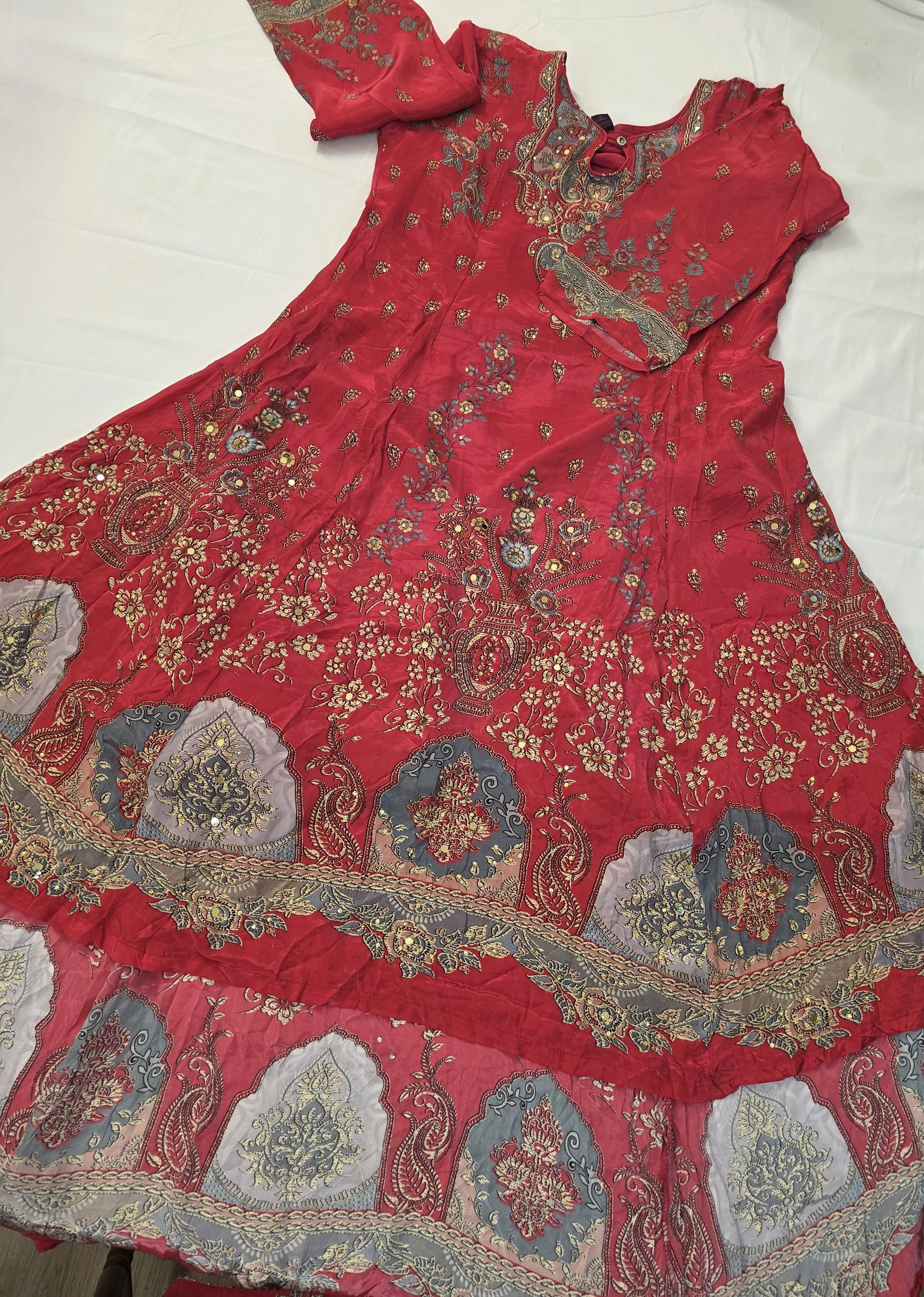 A charming dark pink suit with delicate embroidery, perfect for festive occasions or parties. Elegant, vibrant, and effortlessly graceful.