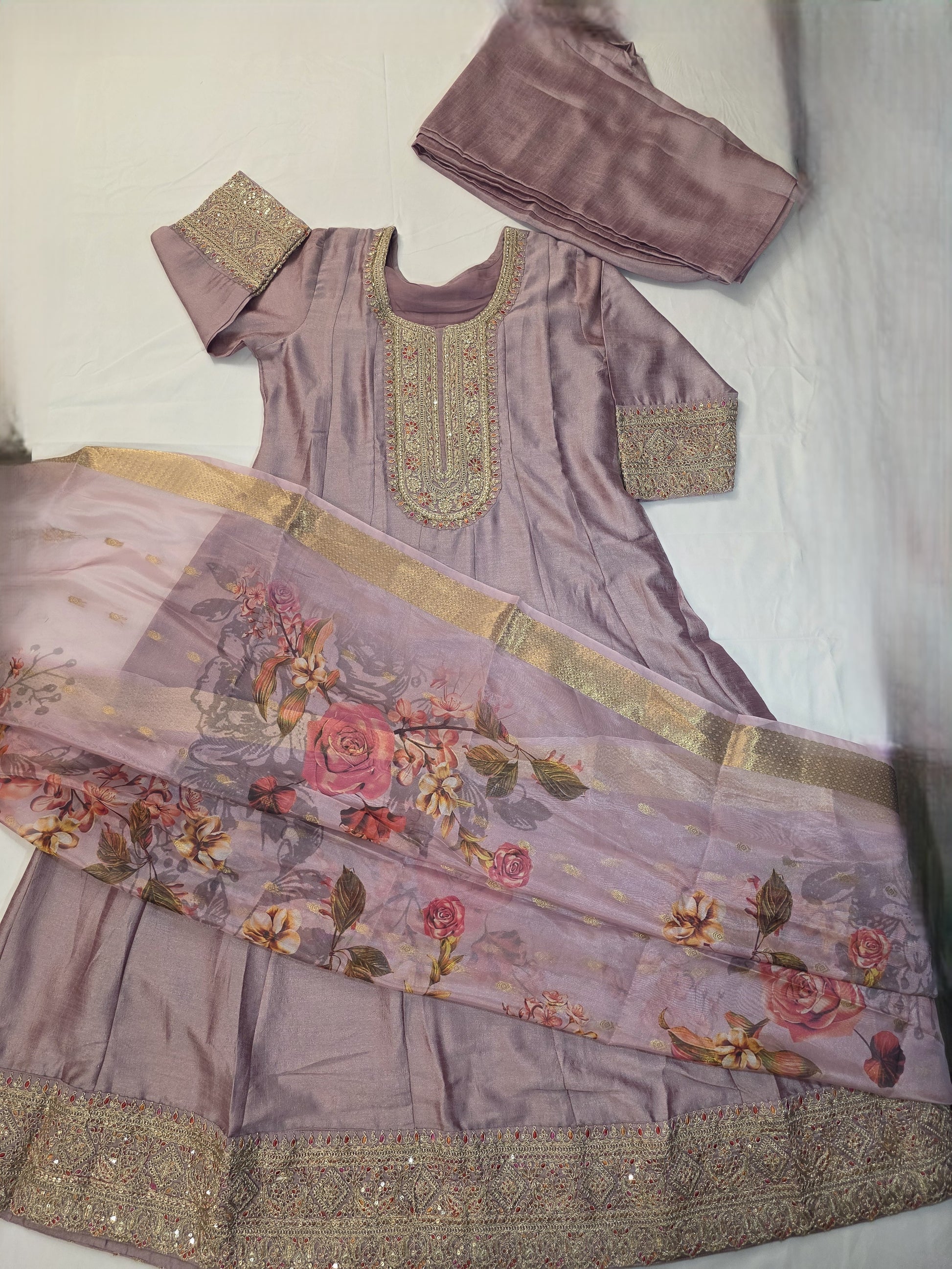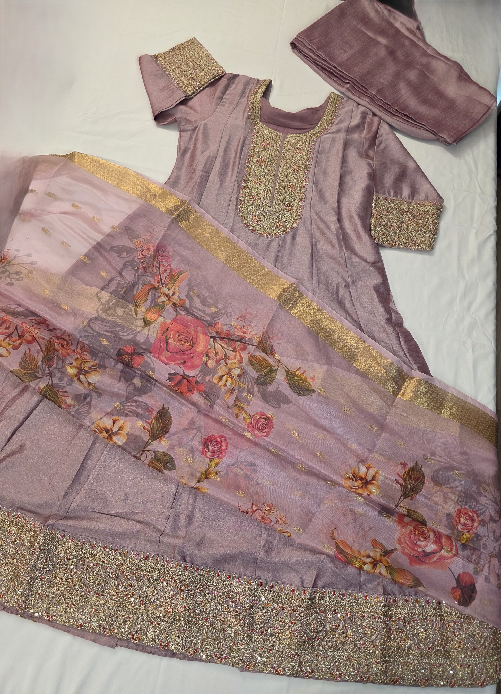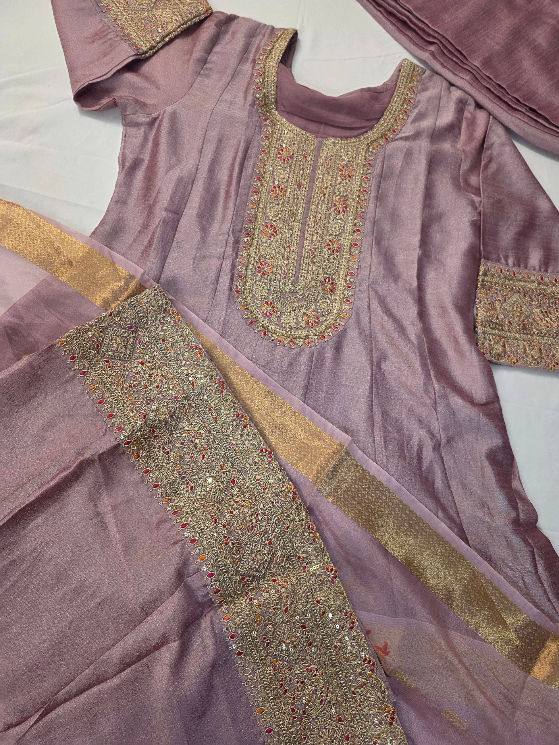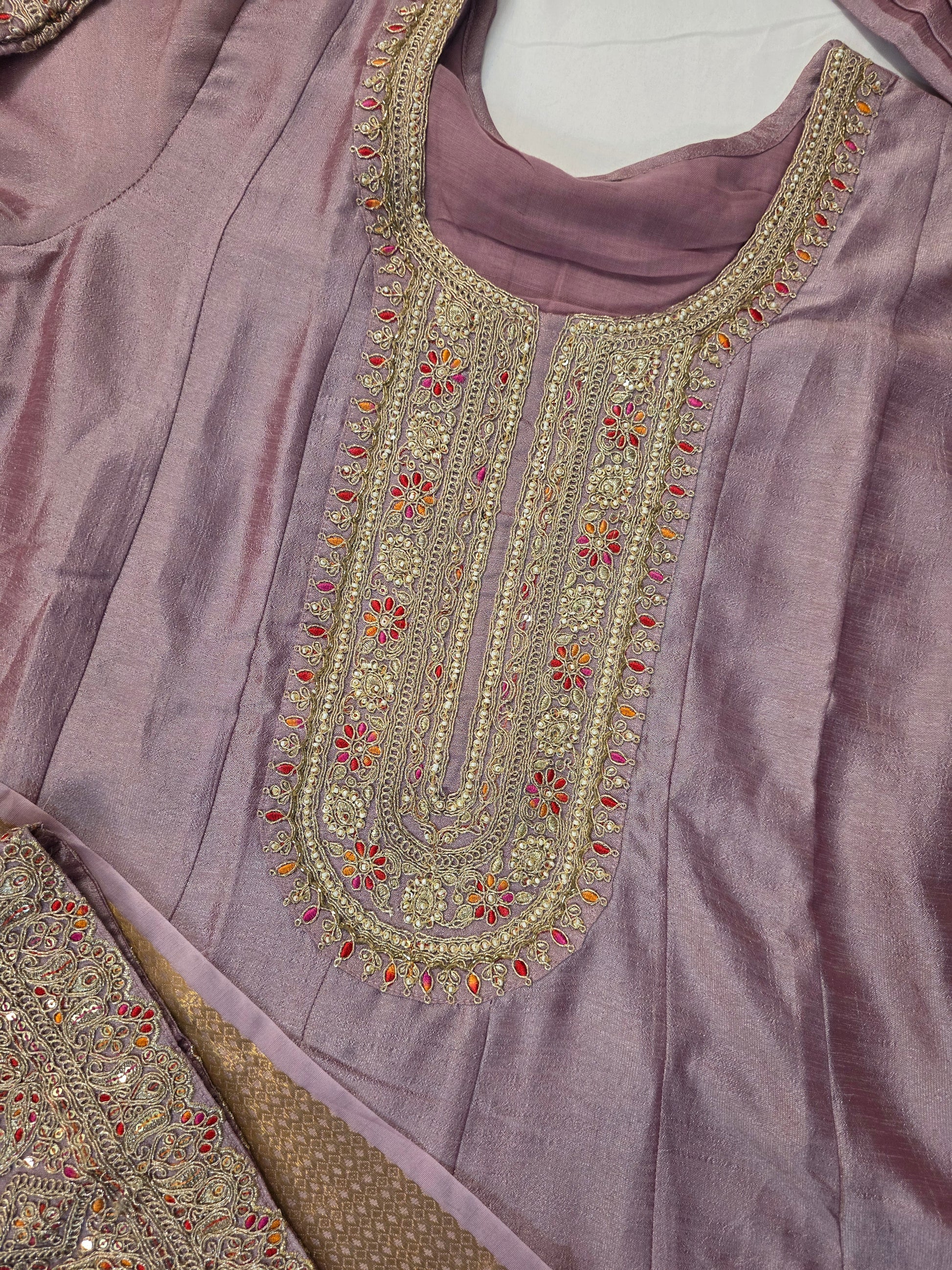 Graceful purple suit with fine embroidery and soft fabric, perfect for festive gatherings and evening celebrations.
